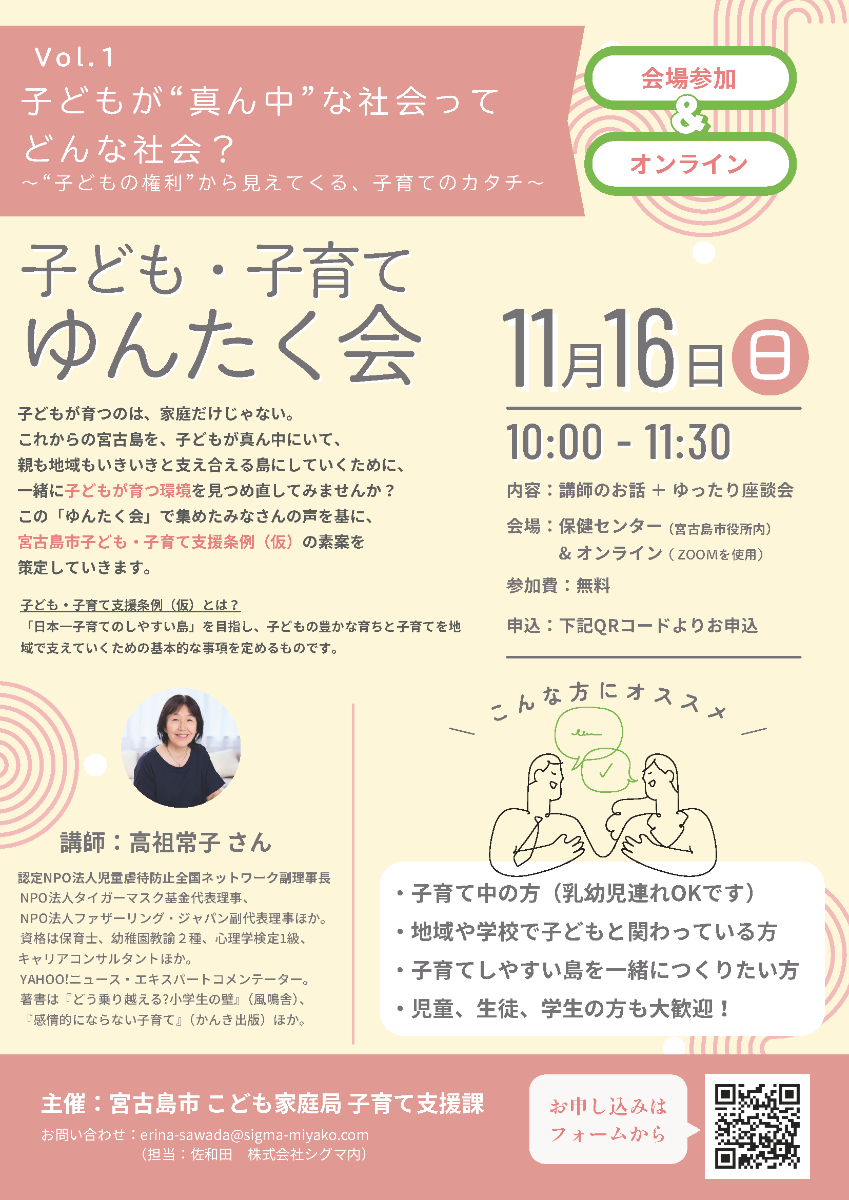 - 児童・生徒・学生の方も歓迎 - 主催:宮古島市 こども家庭局 子育て支援課